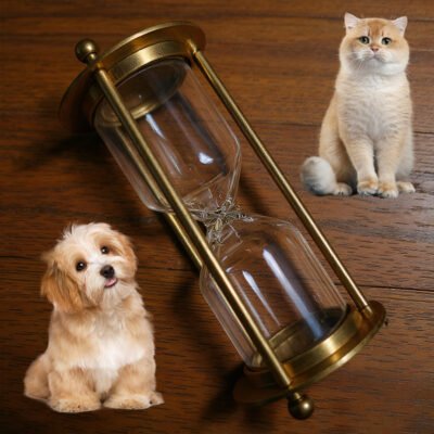 Pet Eternal Memorial Hourglass Jar – DIY Fillable Glass Ashes Container, Golden Metal Frame, Tribute Gift for Pets, Eternal Decoration (Metal Hourglass Timer, Vintage Brass Frame, No-Sand-Leak Design, Suitable for