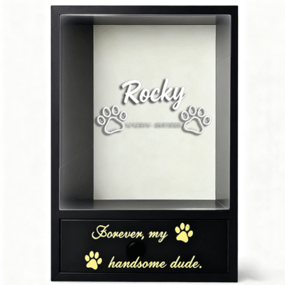 Personalized Pet Memorial Box with Drawer – Custom Name Engraved, Dog Cat Urn for Ashes, Keepsake Shadow Box, Sympathy Gift, Cedar Wood