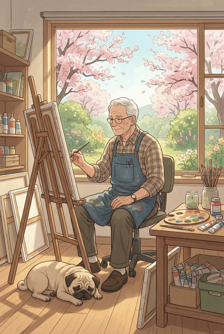 An old man, a sunlit studio, and his quiet little companion — a pug named Sunny ☀️🐶.Grandpa, an amateur painter, filled every corner with portraits of his beloved pup: sleeping, yawning, tilting his head… Sunny would curl up in the…